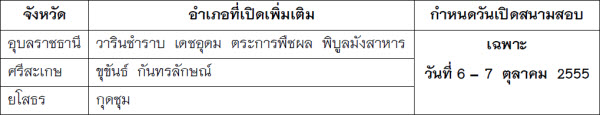 - จังหวัดอุบลราชธานี เปิดเพิ่มอำเภอ วารินชำราบ, เดชอุดม, ตระการพืชผล, พิบูลมังสาหาร