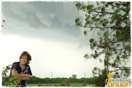 ปรากฏตอนถ่ายเรามือสั่นมากๆ! ตอนนั้นนึกถึงแต่พ่อแม่ ถ่ายไม่รู้เรื่องเลย แต่ได้รูปมาสองสามรูปที่พอดูรู้เรื่อง นึกแล้วยังฮาตัวเอง 5555 แต่ยังโชคดีที่ทอร์นาโดลูกนี้ไม่แตะพื้น (อีกประมาณฟุตนึงก็จะถึงแล้ว) คือถ้าทอร์นาโดแตะพื้นเมื่อไหร่ มันจะกลายเป็นทอร์นาโดสมบูรณ์แบบที่จะปั่นทำลายทุกอย่าง แต่ลูกที่เราเจอคือปั่นๆ อยู่บนอากาศแล้วก็ลอยต่ำๆ เกือบแตะพื้น ผ่านบ้านเราไป ซักพักพอมาดูข่าวอีกที ลูกนั้นกลายเป็นลูกใหญ่ ไปทำลายโรงเรียนที่อยู่ไม่ไกลออกไป น่ากลัวมากกกกก