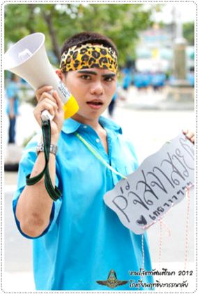 คนถือป้ายโรงเรียน “สุโขทัยเกมส์ 2011”