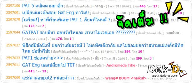 เป็นเรื่องน่าลุ้นทุกปีว่าเข้าไปสอบ GAT/PAT นอกจากจะเจอข้อสอบแล้วจะเจอเหตุการณ์อะไรอีกบ้าง.... เพราะปีก่อนๆ มีเรื่องให้ตื่นเต้นตล๊อดตล๊อด ทั้งกระดาษคำตอบไม่ตรงกับโจทย์หรือวันสอบตรงกับวันคริสมาสต์ ใกล้ๆ สนามสอบมีงานฉลองกัน!! ปีนี้ก็ไม่ต่างจากปีอื่นที่บอร์ด Dek-D จะคึกคักเป็นพิเศษหลังจากสอบเสร็จ เรียกว่ากระทู้ไหลเป็นน้ำตกเลยทีเดียว