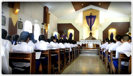 (11) จุดเด่นของโรงเรียน >> 1.พิธีมิสซาเปิดการศึกษา นักเรียนตั้งแต่เนสเซอร์รี่ - มัธยมต้องเข้าร่วมเพื่อรับพรจากแม่พระ(พระแม่มารีย์) ให้เรียนประสบผลสำเร็จ