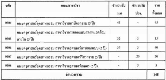 - สถาปัตยกรรมศาสตร์ รับ 5 คน