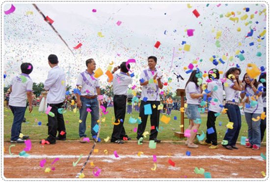 (7) อะไรคือความเว่อร์ของกีฬาสีปีที่ผ่านๆ มา >> เรื่องการตกแต่งสแตนด์ก็ถือว่าปกติ แต่นั่นไม่ใช่ประเด็น!! ประเด็นหลักของความเว่อร์ คือ พลังเสียง เสียงดังมากและหลีดเชียร์ก็อลังการ (กีฬาสีล่าสุดมียิงพลุกระดาษด้วย กระจายเต็มสนามบอลไปหมด )