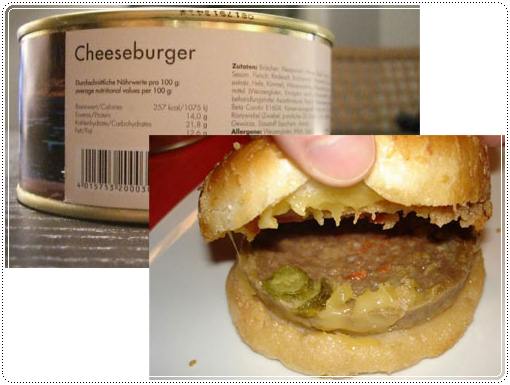 อ่านมาถึงตรงนี้ น้องๆ คงจะรู้สึกเหมือนกันว่าเทคโนโลยีในต่างประเทศค่อนข้างให้ความสำคัญกับความสบายในการใช้ชีวิตของมนุษย์มากทีเดียว แม้กระทั่งเรื่องกิน!! อยากกินอะไรขอแค่เปิดกระป๋องก็อิ่มได้ นอกจากเบอร์เกอร์กระป๋องแล้ว ยังมีอาหารอื่นๆ อีกเช่น ฮอตด็อกกระป๋อง ไส้กรอกกระป๋อง ไก่ทอดกระป๋อง เบเกอรี่กระป๋อง ฯลฯ และอาหารแปลกๆ ก็ไม่ได้มีแค่ที่ยกตัวอย่างมา เนื้อจระเข้ ลิ้นแกะก็มีด้วย ><