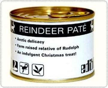 สงสารแซนตาคอสขึ้นมาทันที เมื่อเนื้อกวางเรนเดียร์ถูกมาแปรรูปเป็นอาหารกระป๋อง รสชาติเป็นยังไงไม่ทราบเหมือนกัน แต่ราคาแพงทีเดียวค่ะ ตกประมาณกระป๋องละ $30 ต่อ 1 กระป๋องเล็ก