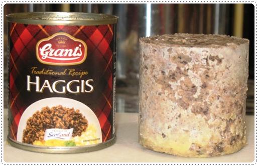 เห็นกระป๋องน่ารักๆ ชื่อน่ารักๆ แบบนี้ ขอบอกว่าตัวตนที่แท้จริงไม่ได้น่ารักตามไปด้วยเลย Haggis เป็นอาหารกระป๋องของชาวสก็อตแลนด์ เป็นอาหารประเภทเครื่องในของแกะ เช่น หัวใจ ตับ ปอด โดยเอามาคลุกๆ กับหัวหอม ข้าวโอ๊ตบดหยาบๆ และเครื่องเทศ จากนั้นก็เอาทั้งหมดยัดลงไปในกระเพาะแกะและทำให้สุก แล้วก็ยัดลงกระป๋องมาให้มนุษย์กินนี่แหละค่ะ