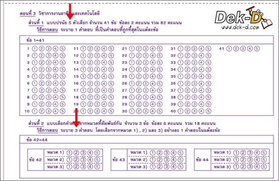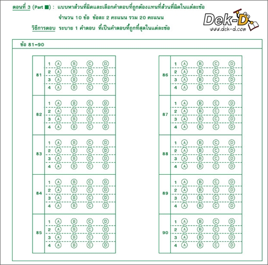 ส่วนนี้คือ กระดาษคำตอบ O-NET วิชาการงานอาชีพฯ 1 ข้อให้ระบาย 3 คำตอบ โอ้ววแม่เจ้า