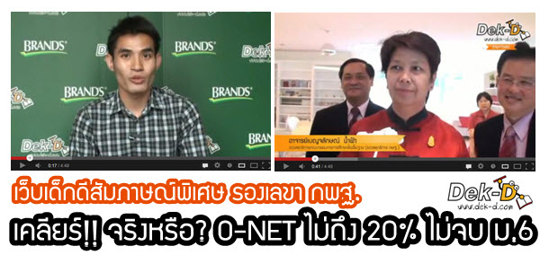 สวัสดีครับ ถามไถ่กันเยอะมาก ว่าหากคะแนน O-NET 8 วิชาไม่ถึง 20% จะไม่จบ ม.6 จริงหรือไม่ เพราะน้องๆ หลายคนแจ้งมาว่าทางโรงเรียนได้กำชับมาแบบนี้ ล่าสุดเรื่องนี้มีความชัดเจนแล้วครับ พี่ลาเต้ ได้ไปสัมภาษณ์ท่านอาจารย์เบญจลักษณ์ น้ำฟ้า รองเลขาธิการคณะกรรมการการศึกษาขั้นพื้นฐาน ผู้ที่ดูแลในเรื่องนี้โดยตรง