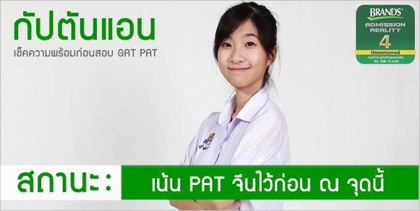 Countdown เข้ามาเรื่อยๆ แล้วนะคะ สำหรับการสอบ GAT PAT ที่จะมาถึงในอีกไม่กี่วันข้างหน้า ตื่นเต้นหัวใจจะหยุดกันหรือเปล่า ยิ่งโค้งสุดท้าย ยิ่งบีบหัวใจ คนที่่อ่านจบแล้วก็สบายใจไป ส่วนคนที่ยังไม่พร้อม ก็ต้องเตรียมต่อจนกว่าจะมั่นใจ ไม่งั้นนอนไม่หลับแน่ๆ