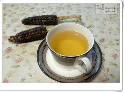 옥수수 수염차 อ่านว่า "อกซูซู ซูยอมช่า" โดยอกซูซูแปลว่า "ข้าวโพด"