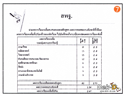 จากสไลด์ด้านบนจะเห็นได้ว่า เพื่อนคนนั้นได้เกรดเฉลี่ยสะสม ม.ปลาย 2.71 แต่พอดีทำคะแนน O-NET ทั้ง 8 วิชาได้ไม่ค่อยดีซึ่งเทียบเป็นเกรดได้แค่ 1.54 เมื่อนำทั้ง 2.71 และ 1.54 มาคำนวณตามสูตรถ่วง เกรดเฉลี่ยสะสมของเพื่อนคนนั้นจึงเหลือแค่ 2.47 ครับ