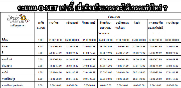 ลองมาเทียบดูซิว่า คะแนน O-NET เท่านี้ เมื่อคิดเป็นเกรดจะได้เกรดเท่าไหร่ ?