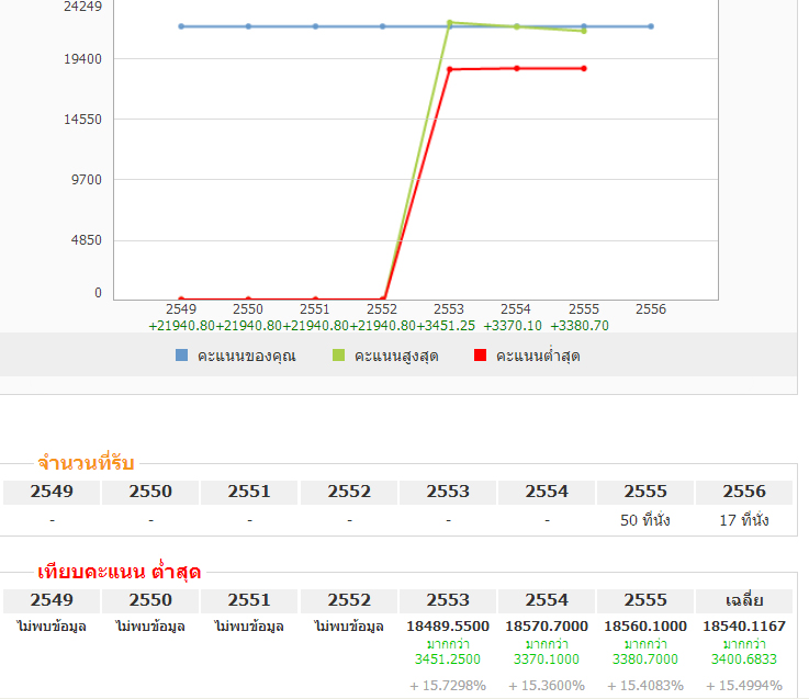 1) คณะที่่คะแนนติดลบ คือ คณะที่เราได้คะแนนน้อยกว่า เมื่อเทียบจากคะแนนต่ำสุดปีที่แล้ว (หรือหลายๆ ปี)