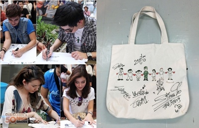 นอกจากความฟินของคู่นี้แล้ว เจ๊ยังใจดี มีของที่ระลึกสุดพิเศษ "ถุงผ้าพร้อมลายเซ็นจากสิงโต ฮั่น น้ำตาล หมอเก่ง รุจ และเดอะสตาร์ 9" กติกาง่ายๆ เพียงตอบมาว่า