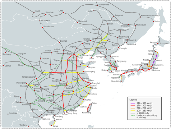 โครงข่ายรถไฟความเร็วสูงในทวีปเอเชียตะวันออกค่ะ
