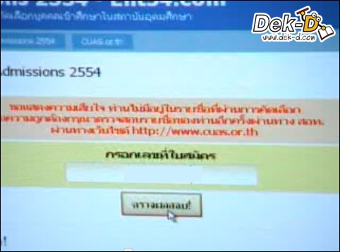 แต่หาก "แอดมิชชั่นไม่ติด" มันจะขึ้นแบบนี้.... (ปล.แต่ละเว็บจะขึ้นไม่เหมือนกัน แต่ละประมาณนี้)