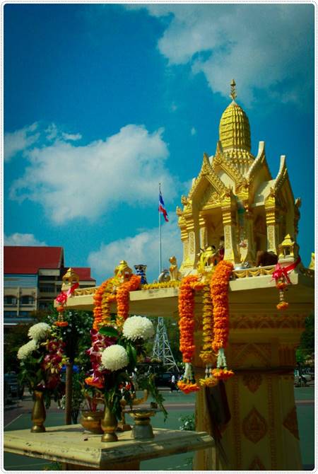 (11) จุดเด่นของโรงเรียน >> พระพุทธรูปหน้าโรงเรียน ศาลพระภูมิ (ตอนสอบเข้า สอบ final น้ำแดงเพียบ) ลานทูบีฯ เสาธงทรงหอไอเฟล