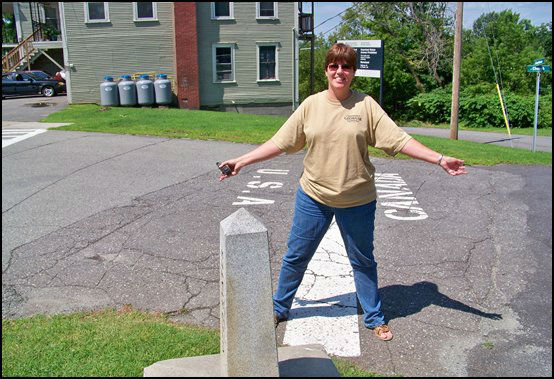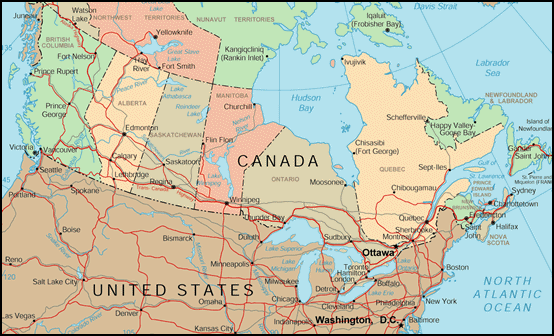 แต่ที่อยากนำเสนอมากๆ ก็คือ "พรมแดนระหว่างประเทศ" ปกติแล้วมักมีแม่น้ำ ภูเขา หรือมีด่านกั้นใช่มั้ยคะ และสำหรับประเทศกับอเมริกาและแคนาดาก็เช่นกันค่ะ ถ้าดูจากแผนที่ น้องๆ จะพบว่ามีหลายรัฐของอเมริกาที่ติดกับหลายมณฑลของแคนาดา พรมแดนระหว่างประเทศจึงมีหลายจุดมาก แต่ที่เป็นไฮไลต์จริงๆ คงต้องยกให้พรมแดนในเมือง Derby Line!! เพราะจุดคั่นประเทศมันผ่ากลางเมืองเลยค่ะ บ้านบางหลังก็กินพื้นที่ทั้ง 2 ประเทศ 0__0 หรือแม้เแต่ห้องสมุดประชาชนหรือโรงละครของเมือง ก็มีเส้นคั่นผ่ากลางเลยล่ะ!!