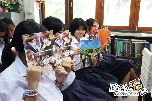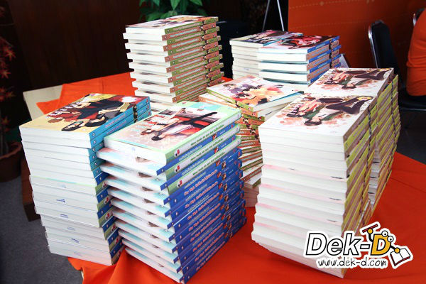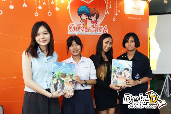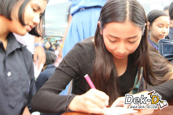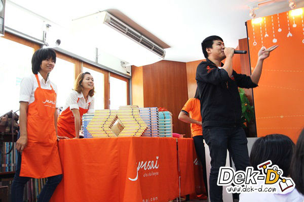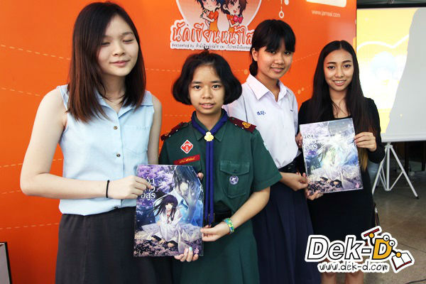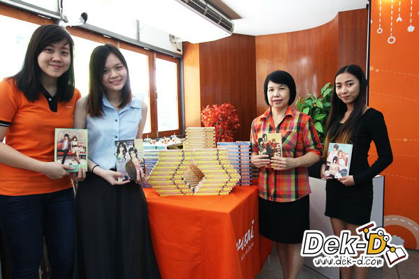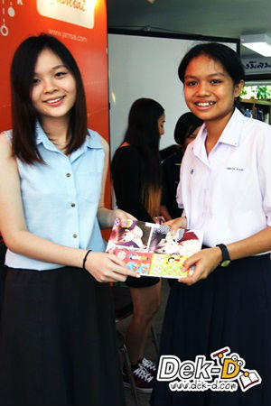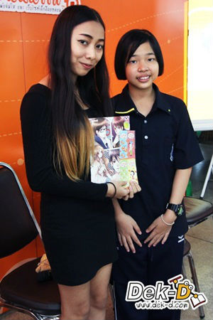 น้องๆ เข้ามาขอลายเซ็นและถ่ายรูปกับพี่ๆ นักเขียนหน้าใสทั้งคู่ ราวกับเจอเซเล็บตัวเป็นๆ