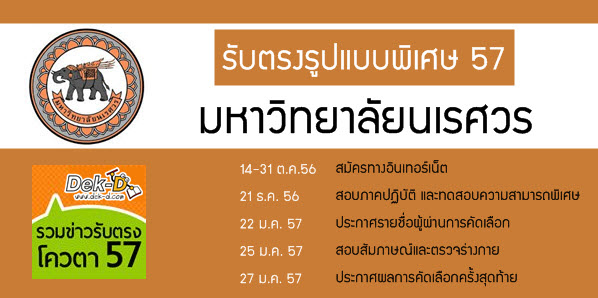 สวัสดีครับ ปีนี้รับตรง ม.นเรศวร จัดใหญ่ จัดหนักจริงๆ ครับ หลังจากวันก่อนมีความคืบหน้าเกี่ยวกับโควตา 17 จ.ภาคเหนือ กับรับตรง คณะแพทยศาสตร์ ไปแล้ว ล่าสุดวันนี้มีความคืบหน้าเพิ่มมาอีก เป็นรับตรงโครงการพิเศษถึง 11 โครงการ แต่ก่อนอื่นต้องอธิบายก่อนว่า โครงการพิเศษในที่นี้ ไม่ได้หมายถึงสมัครแล้วจะได้เข้าไปเรียนในภาคพิเศษนะครับ แต่เป็นโครงการที่จัดขึ้นมาเพื่อเปิดรับนักศึกษาที่มีความสามารถพิเศษเฉพาะด้านนั้นเองครับ จะมีโครงการอะไรบ้างนั้นไปดูกันเลยครับ