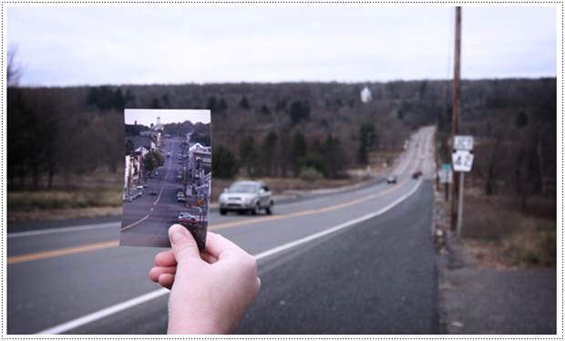 ภาพเมืองเซนทราเลียในอดีต(รูปภาพในมือ) เทียบกับปัจจุบัน