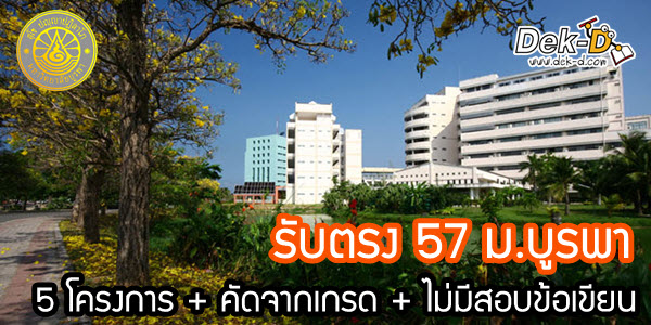 ทั้งหมดนี้เป็นรับตรง 5 โครงการแรกของ ม.บูรพา ที่เปิดรับสมัครนะครับ รูปแบบจะคล้ายกันคือ ไม่มีสอบข้อเขียน พิจารณาจากเกรดและสัมภาษณ์ ส่วนรับตรงรอบใหญ่ที่จะเปิดรับช่วง ม.ค.จะเป็นรับตรงทั่วประเทศ ซึ่งจะวัดกันที่คะแนน GAT PAT และ 7 วิชาสามัญล้วนๆ ครับ ดังนั้นน้องๆ ที่อยากเข้า ม.บูรพา สะดวกทางไหน ไปทางนั้นได้เลยคร้าบ