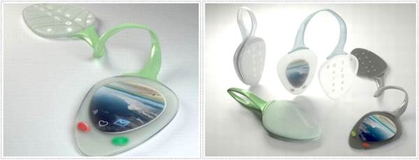 รูปทรงมือถือรูปแบบนี้น่าจะถูกใจน้องๆ ผู้หญิงนะคะ สำหรับมือถือรูปทรงใบไม้เป็นมือถือที่ผลิตจากพลาสติกที่เป็นมิตรกับสิ่งแวดล้อม ออกแบบโดยดีไซเนอร์ Anastasia Zharkova ตัวรูปทรงก็ทำจากพลาสติก โปร่งใส สวมใสแบบหูฟัง น่ารักมากๆ