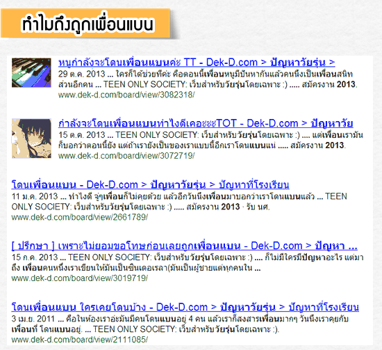 แต่ต้องทน เพราะเหลืออีกแค่ปีเดียวเราก็จะออกจากโรงเรียนนั้นแล้ว (หวังว่าโรงเรียนใหม่คงมีเพื่อนที่ดีๆกว่านี้นะ)
