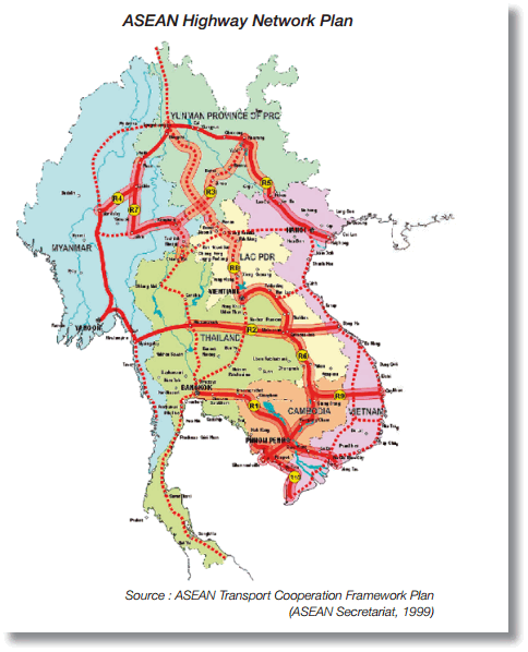 แน่นอนว่าเราอาจจะมีเรือ รถไฟ และเครื่องบินในการขนส่งระหว่างประเทศที่อาจรวดเร็ว และอาจประหยัดกว่าก็จริง แต่การขนส่งทางถนนนี้มีข้อดีสำคัญที่สุดคือ การส่งได้ถึงที่หมายแท้จริงค่ะ เรียกว่า ถึงหน้าประตูบ้าน โรงงาน ห้างร้านได้เลย ดังนั้นถนนที่ดี และมีเส้นทางเชื่อมโยงได้ทุกที่จึงมีความสำคัญมากๆ ในทุกการเดินทางค่ะ ก็พอสินค้าลงจากเครื่องบินก็ยังต้องขนใส่รถส่งต่อเลยนี่เนอะ และเพื่อป้องกันการงง พี่เกียรติขอทวนอีกรอบนะจ๊ะ ในบทความนี้มีเส้นทางที่กล่าวถึงอยู่สามส่วนใหญ่ๆ ได้แก่