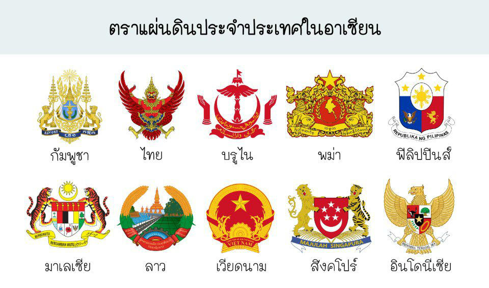 ***พวกธงอาเซียนนี่ตายราบคาบ ถ้าจำไม่ผิดเสือเป็นสัตว์ปะจำชาติบรูไน เราก็เลยเลือกตราแผ่นดินที่มีเสือซ้ายขวา แล้วมีพระอาทิตย์พระจันทร์ข้างบน(มั่นใจมากขอบอก55555) แต่พอคห.ข้างบนเอารูปมาลง อ่าววววว มันคือตราแผ่นดินของมาเลเซีย55555 นี่จะถูกอะไรบ้างมั้ย? ความรู้อาเซียนที่เคยเรียนมา คืออัลไล555555