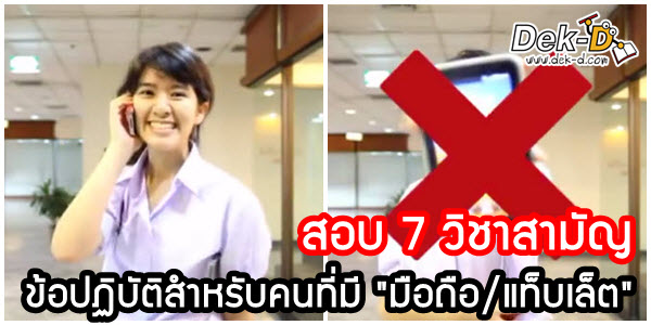 การสอบ 7 วิชาสามัญต้องปิดมือถือทุกคนนะครับ ดังนั้นน้องๆ คนไหนที่ต้องนำมือถือใส่กระเป๋าไว้หน้าห้อง อย่าลืมปิดมือถือไปเลย เพราะหากมีเสียง SMS หรือเสียง Line ดังขึ้นมา กรรมการจะสงสัยเราในข้อหาทุจริตได้นะครับ