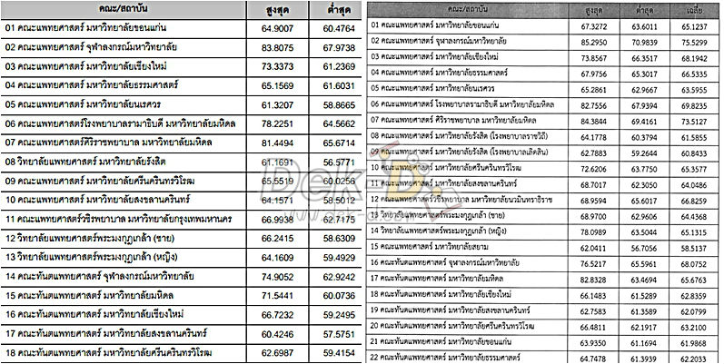 เทียบคะแนนสูง-ต่ำ กสพท.