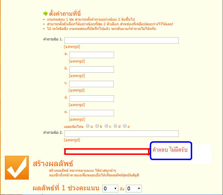 กดเพิ่มข้อ มาแต่ให้ใส่ คำถาม แล้วจะใส่คำตอบยังไงอ่ะ
