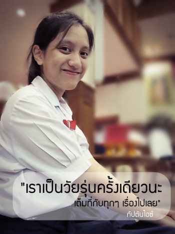 ไอซ์ - วันแรกที่มาเรียน จำได้เลยว่า เราค่อนข้างอึดอัดเพราะต้องทำความรู้จักกับเพื่อนใหม่หมดเลย จำได้เลยอ่ะว่าอาทิตย์แรกกลับบ้านมาร้องไห้ เพราะแบบเรายังไม่สนิทกับเพื่อน แต่เชื่อไหมภายใน 2 อาทิตย์ เราสนิทกับเพื่อนขึ้นมาก บางคนสนิทยันปัจจุบันเลยแหละ พอเราขึ้นมาอยู่สัก ม.2-ม.3 เราก็เริ่มจะดื้อเงียบบ้าง ไม่ค่อยตั้งใจเรียน