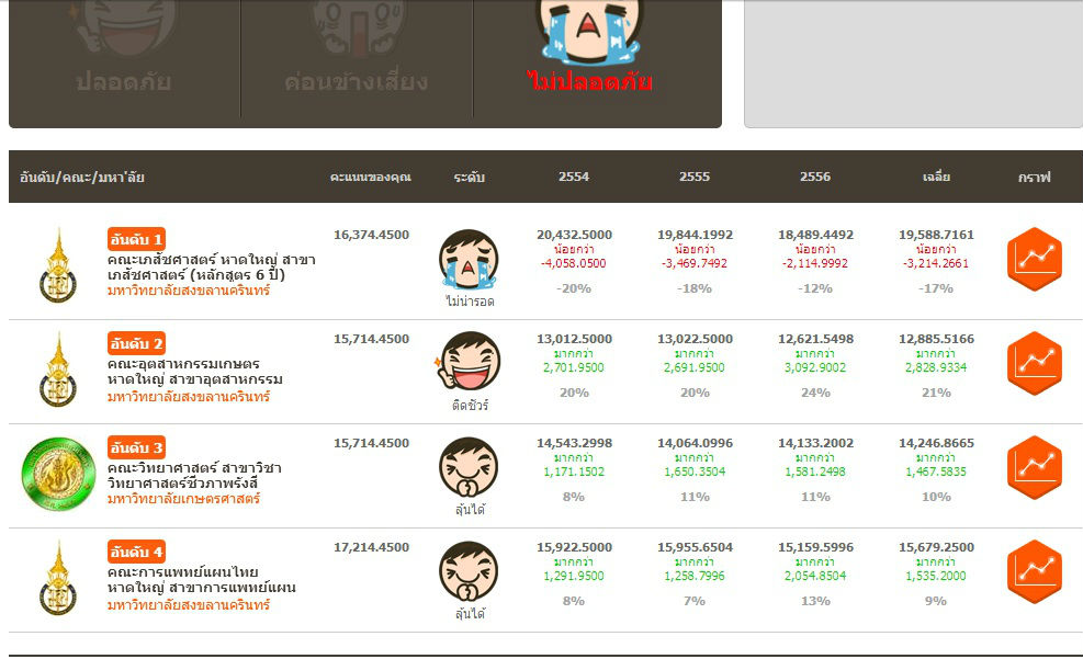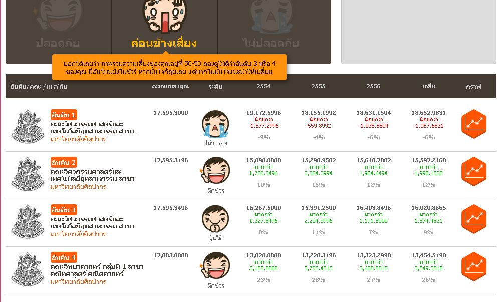 1.ไปที่โปรแกรมคำนวณคะแนนแอดมิชชั่นให้ติดชัวร์เว็บ Dek-D ในฟังก์ชั่น "เช็คความเสี่ยง 4 อันดับ" จากนั้นลุยคำนวณหาคณะที่ใช่ มหาลัยที่ชอบ เข้าใช้โปรแกรมคำนวณ คลิกที่นี่