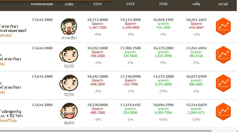 - ปี 54 55 มันใช้แกท 40% ต่างจากปี 56 ใช่มั้ยคะ คะแนนมันเลยดูสูงหน่อยๆ