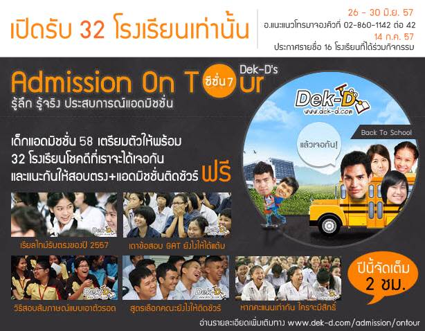 ชมประมวลภาพ Dek-D's แอดมิชชั่นออนทัวร์ของซีซั่น 1-6 และรายละเอียดต่างๆ คลิกที่นี่