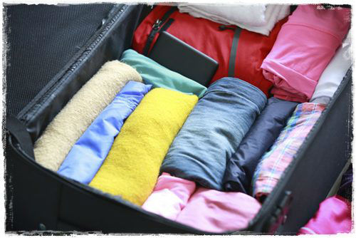 ส่วนเสื้อผ้าควรม้วนๆ แบบในภาพค่ะ จะช่วยประหยัดพื้นที่กระเป๋าได้เยอะเลย