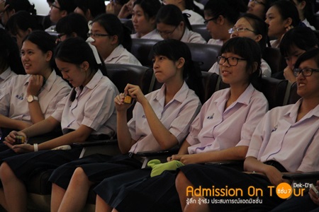 เวลาบ่ายสามโมงปุ๊ป น้องๆ ม.6 ทั้งระดับก็มานั่งแน่นหอประชุมปั๊ปทันที |