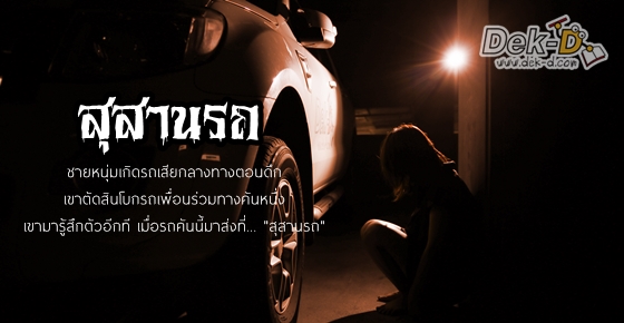 ผมเชื่อว่าหลายคนเคยเจอมีคนมาโบกรถบ้างมายืนผ่านรถบ้างแต่เรื่องผมแปลกแหวกแนวแค่ไหนมาดูกัน ผมเคยมีลุงที่เป็นคนที่มีสัมผัสพิเศษ ลุงผมเคยเจออะไรประหลาดหลายเรื่องแต่เรื่องนี้โดนใจผมมาก เรื่องมีอยู่ว่า... ลุงผมได้ไปที่จังหวัดขอนแก่นเพื่อไปหาย่า ผมระหว่างทางเข้าตัวเมืองขอนแก่น และเลี้ยวเข้าไปในซอยรถก็เกิดดับ ลุงผมเลยหารถเพื่อพาไปบ้านย่าก่อน เพราะมันอยู่ไม่ไกลจากหมู่บ้านย่ามาก ลุงผมรอรถผ่านอยู่เวลานานก็ไม่มีรถจึงเดินไปเรื่อยๆ จนเห็นรถคันหนึ่งขับสวนมา ลุงผมเลยโบกรถ และรถคันนั้นก็หยุด รถคนนั้นหยุดในระยะไม่ไกลจากลุงผมมาก ลุงผมเลยบอกเดินตรงไปทางกระจกรถแล้วพูดว่า "ขอติดรถไปด้วยได้ไหมครับ ผมจะลุงที่หมู่บ้าน...." คนขับก็พยักหน้า ลุงผมเลยขึ้นไปบนรถ ลุงผมได้กลิ่นสาบเหม็นฉุนมากเหมือนหนูตายแต่ก็ไม่พูดอะไร ขับไปได้สักนิดลุงผมก็ง่วงนอนขึ้นมา และหลับไป ลุงผมมาสะดุ้งตื่นอีกทีตอนดึกมาก แต่ไม่รู้ว่ากี่โมงและมองสำรวจรอบๆ ตัว ลุงผมเห็นรถคันที่ลุงขึ้นมาเป็นรถที่เละ พังไปหมด ลุงผมเดินมาเรื่อยๆ ก็เห็นชาวบ้านคนหนึ่งเลยถามว่า "ลุงที่นี้ที่ไหน" ลุงคนนั้นก็ตอบว่านี่มันสุสานรถเว้ย.. ว่าแต่เองเข้ามายังไงเนี่ยไม่เคยเห็นเลย ลุงผมเลยตอบว่า "ผมไม่รู้ ผมติดรถคันหนึ่งมารถผมเสียระหว่างทางเลยขอติดรถมาด้วย" ลุงคนนั้นทำหน้าเบื่อๆ แล้วกล่าว "เองโดนผีหลอกแล้วละ มีคนโดนหลายคนแล้วแต่ไม่เท่าเอ็ง แล้วเอ็งติดคันไหนมา" ลุงผมเลยชี้ไปที่รถคันนั้น คราวนี้ชาวบ้านคนนั้นทำหน้าเหวอเลย เขาบอก "รถนั้น เป็นรถที่ถูกนำมาทิ้งไว้นานแล้ว เจ้าของขับไปชนต้นไม้ เสียชีวิตคาที่เลย" จังหวะนั้นลุงผม แทบช๊อค พูดไม่ออก ได้แต่นิ่ง กลับบ้านแบบเหวอไปเลย!! ลาเต้ลิขิต : ส่งเรื่องลี้ลับในสถาบันของคุณมาได้ที่ latae@dek-d.com