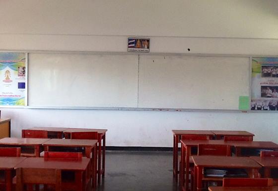 (13) สภาพห้องเรียน >> ห้องเรียนทุกห้องจะเป็นพัดลมหมดครับ ซึ่งห้องหนึ่งก็มีประมาณ 4-5 ตัว โต๊ะเรียนเป็นโต๊ะไม้ กระดานไวท์บอร์ด แต่บางห้องก็ยังใช้กระดานดำอยู่ มีประมาณ 4-5 ห้อง