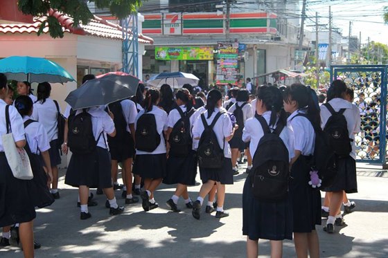โรงเรียนที่พี่เคยเรียนสมัยประถมก็มีกฎห้ามใส่รองเท้าขึ้นอาคารเรียนเหมือนกันค่ะ