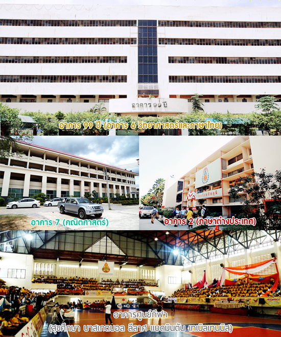 (10) สภาพห้องเรียน >> ปัจจุบันมีอาคารเรียน 7 อาคารนะครับ คือ อาคาร 1,2,4,5,6,7,ศูนย์กีฬา (ที่ไม่มีอาคาร 3 ก็เพราะเพิ่งทุบทิ้งไป) อาคารเรียนที่นี่ใหม่สุดคืออาคาร 7 สร้างปี 2552 ครับ เก่าสุดก็คือ อาคาร 2 สร้างปี 2510 ทำให้ห้องเรียนในหลายอาคารสภาพไม่ค่อยดีเท่าไร หน้าต่างกระจกก็แตกไปหลายบานแล้วเหมือนกัน แต่ก็ยังเรียนกันได้อ่ะนะ (555) ภายในห้องจุคนนั่งเรียนได้ 50กว่าคน ส่วนห้องเรียนคอมพิวเตอร์และห้องประชุมหรูสุดๆครับ ฮ่าๆๆ (ป.ล.โรงเรียนผมใช้คอม Macintoch Apple เลยเน้ออออ)