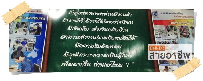 แต่เมื่อว่าด้วยคอลัมน์สายอาชีพ ก็ต้องเชียร์น้องๆ มาเรียนสายอาชีพ/อาชีวะกันหน่อย ปีนี้ทางสำนักงานคณะกรรมการการอาชีวศึกษาก็ดำเนินโยบายเพื่อเพิ่มผู้เรียนสายอาชีวศึกษานะคะ ตลอดช่วงปี 2557 ที่ผ่านมาก็มีความพยายามในการจัดงานอาชีวะต่างๆ เพิ่มปรับทัศนคติและภาพลักษณ์ให้นักเรียนและผู้ปกครองมองเห็นโอกาสและอนาคตของการเรียนสายอาชีพมากขึ้นค่ะ