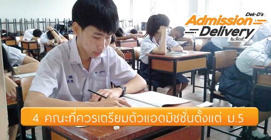 สวัสดีครับ ไม่เก่งจริง ไม่ทันจริงๆ ครับ หากจะไปเตรียมตัวสอบเข้าคณะต่อไปนี้ตอนอยู่ ม.6 วันนี้ พี่ลาเต้ และคอลัมน์แอดมิชชั่น เดลิเวอรี่ ถือโอกาสช่วงท้ายๆ ของเทอมนี้ มาบอกข้อมูลเด็ด "4 คณะที่ควรเตรียมตัวสอบเข้าตั้งแต่ ม.5" มาบอกให้น้องๆ ได้เตรียมตัวกัน มีคณะอะไรบ้าง ไปดูกันเลยครับ