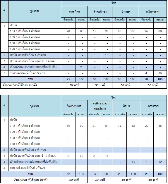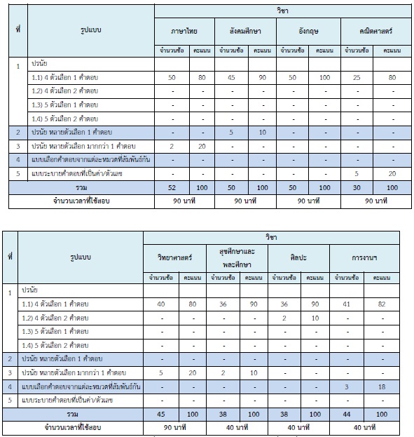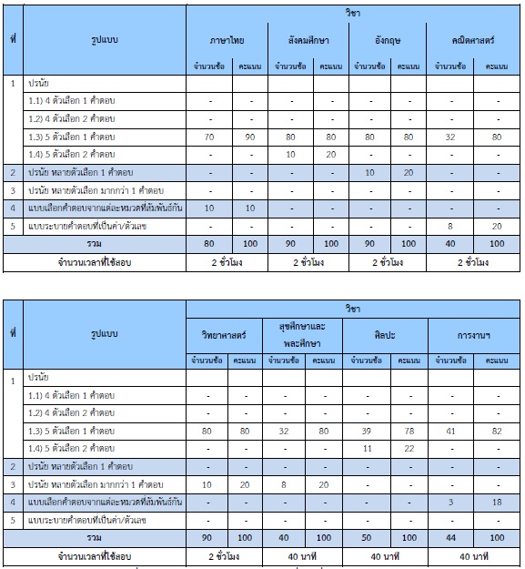 ** ทุกวิชาให้เวลาทำ 1 ชั่วโมง 30 นาที