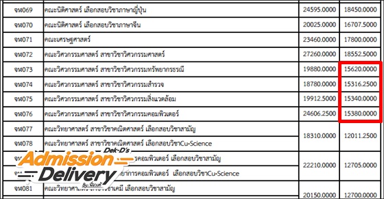 - โดยเฉพาะสาขาวิศวกรรมคอมพิวเตอร์ ที่คะแนนลดลงเกือบ 5 พันคะแนน เพราะไม่มีคนกล้าเลือก ส่งผลให้มีผู้สมัครทั้งหมด 67 คน ขณะที่เปิดรับ 90 ที่นั่ง (ยอดรับมากกว่ายอดคนสมัคร)