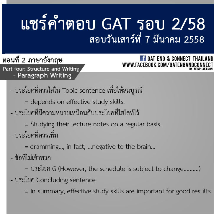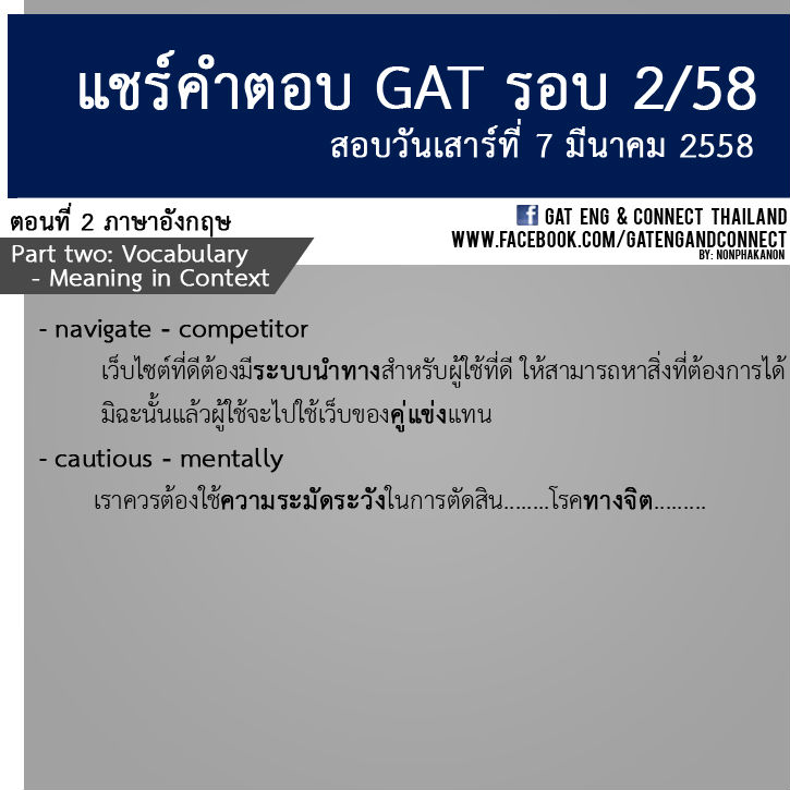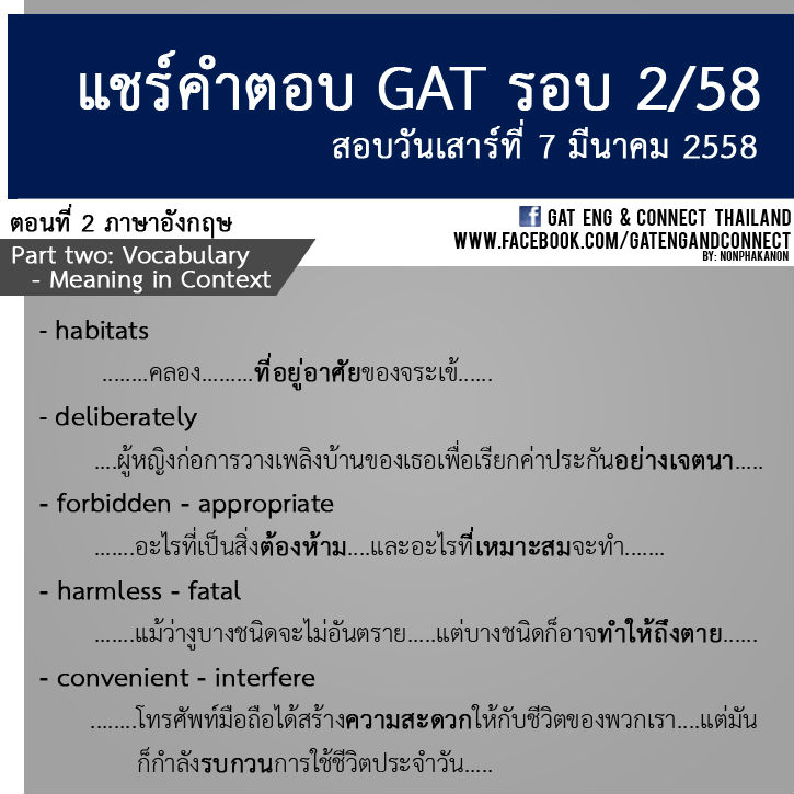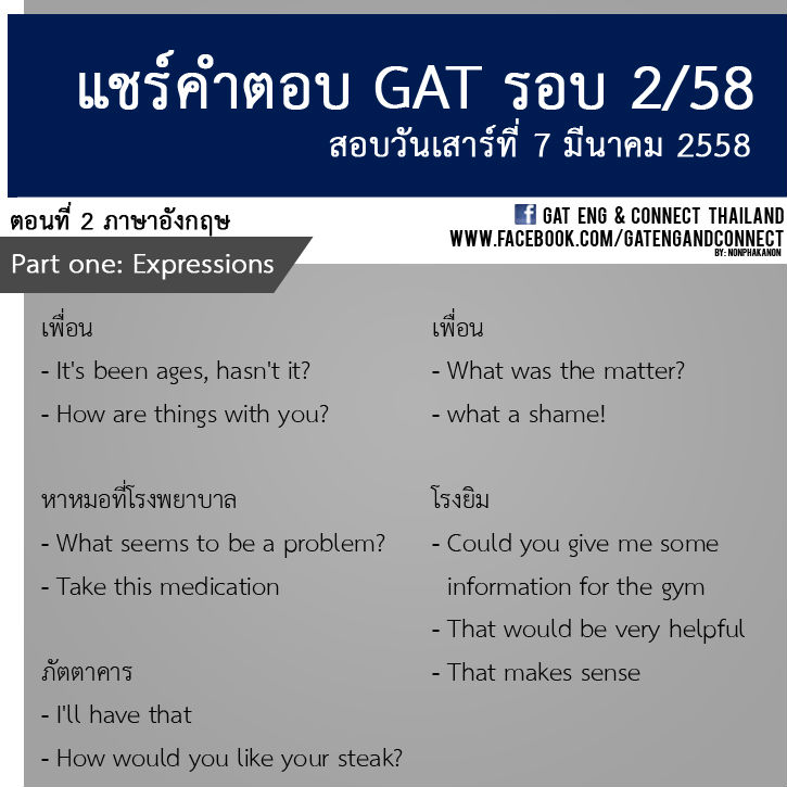 กลับจากสอบ GAT วิชาความถนัดทั่วไป (รอบ 2/58) กันแล้ว เป็นอย่างไรกันบ้างครับ สติ สตางค์ ความมั่นใจ ยังอยู่ครบไหมเอ่ย.. วันนี้เพื่อเพิ่มความมั่นใจกับคำตอบที่ตอบไป พี่ลาเต้ ขอเปิดพื้นที่แบบกว้างๆ ให้น้องๆ มาคุยและแลกเปลี่ยนกันอย่างเต็มที่