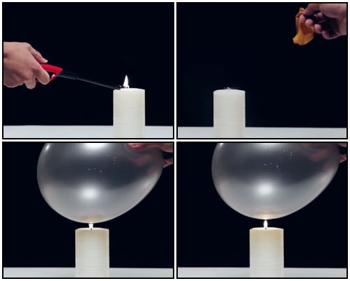 ใครกลัวเสียงลูกโป่งแตก ข้ามการทดลองนี้ได้เลยค่ะ เริ่มต้นให้น้องๆ จุดเทียนไขจนติดไฟ ลูกโป่งลูกแรกที่ทดลอง ไม่ต้องใส่น้ำ จะเห็นว่า แค่เอาไปใกล้ๆ ไฟ ก็แตกดังปัง! แล้ว ลูกที่สองให้ทดสอบใหม่ นำลูกโป่งไปใส่น้ำ ไม่ต้องเยอะมากนะคะ แล้วทำตามเดิม ผลปรากฏว่า ลูกโป่งที่มีน้ำ ลนไฟยังไงก็ไม่แตกค่ะ