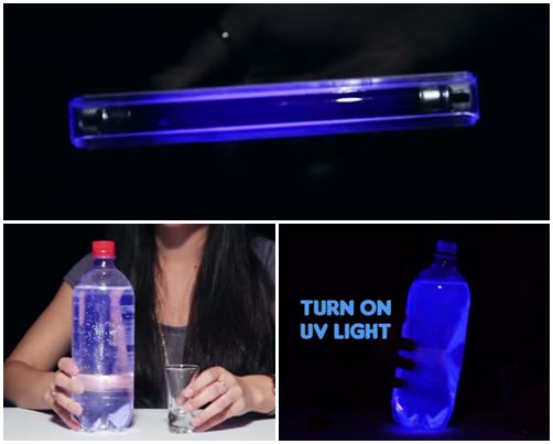 การทดลองนี้ไม่มีอะไรมากค่ะ แค่เตรียมของทุกอย่างไว้ก็ได้ผลทดลองเลย โดยจะเป็นการทดสอบว่าน้ำโทนิค (น้ำโซดาที่มีส่วนผสมของควินิน) นั้นสามารถเรืองแสงได้เมื่อถูกกับรังสียูวีจากแบล็คไลท์นั่นเอง การทดลองนี้อาจจะหาของยากนิดนึง โดยเฉพาะแบล็คไลท์ แต่ถ้ามีก็ลองเล่นกันได้เลย ส่วนน้ำโทนิคนั้น ร้านสะดวกซื้อก็มีขายค่ะ ลองไปส่องๆ ดูเป็นกระป๋องสีเหลือง เขียนว่า Tonic water เลย